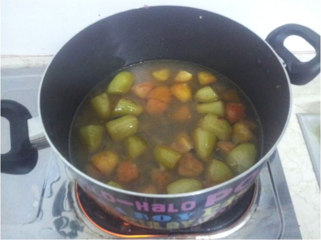 4. Add the watermelons and let it boil for about 2 minutes then simmer for another 5 minutes